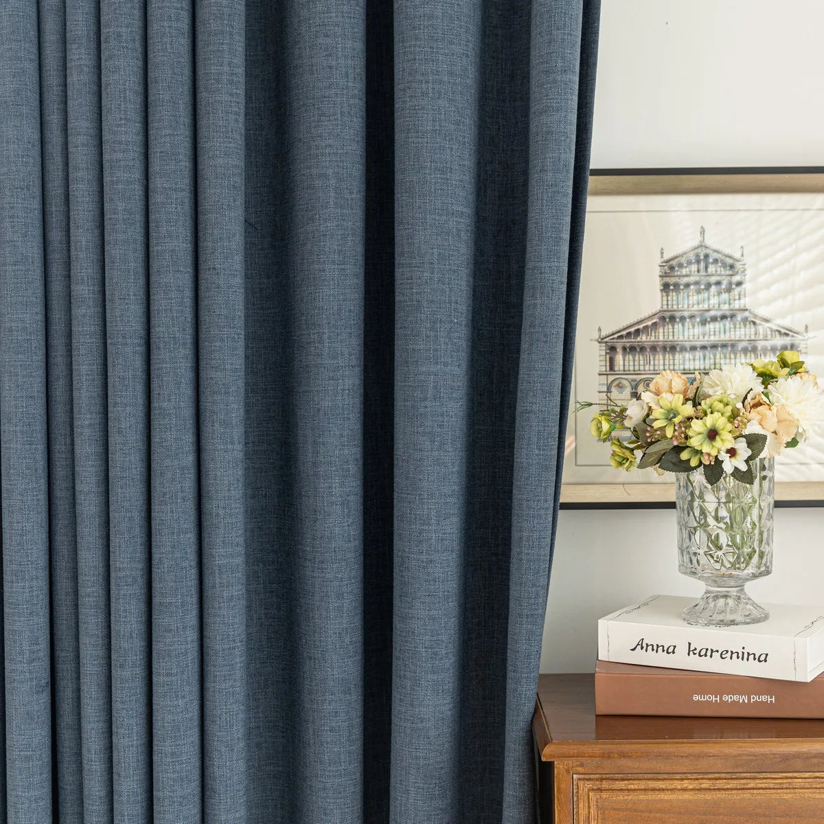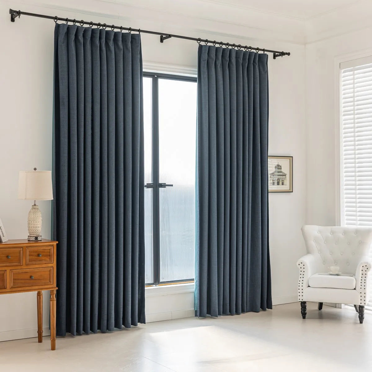 • Lightweight faux linen: Offers the texture of natural linen, easier to maintain, and budget-friendly for living room drapes